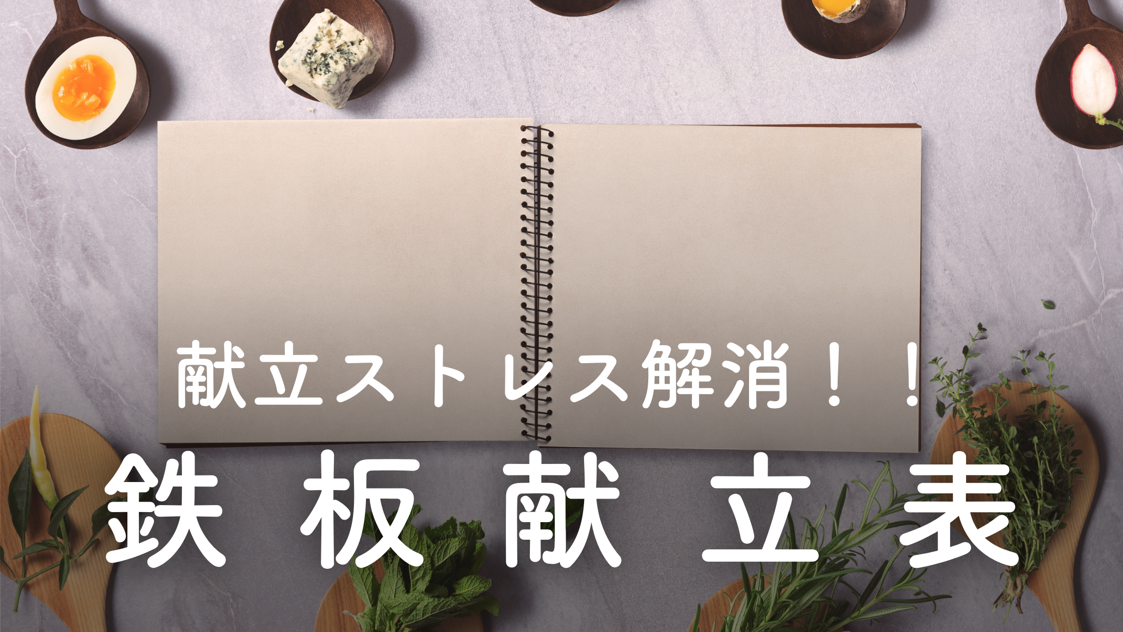 - 各食材の鉄板メニューを5〜6個リストアップ(和・洋・中を少しずつ混ぜると飽きにくい)